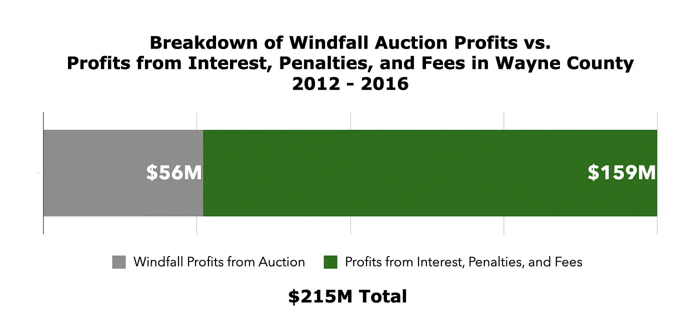 In Michigan, the most broadly experienced financial punishment, and the most reliable source of county profit, isn’t found in the tax foreclosure auction. It happens in the years before auction, while people are still paying, still scrambling, still trying to keep their homes out of foreclosure. Foreclosure is what happens after the system’s actual excessive fines fail to deter.